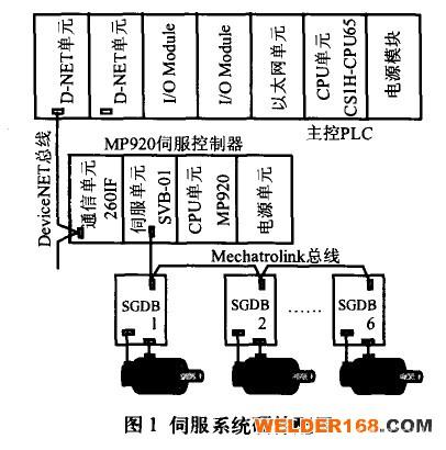 主控PLC是整條生產線的邏輯處理中心,它一方面協調控制現場各種設備按照工藝順序要求工作,另一方面向上層監控設備實時發送生產和設備狀態信息。主控PLC選用OMRON公司的CS1H.CPU65型PLC系統。伺服系統采用日本安川電機公司的MP920伺服系統,該伺服系統由伺服控制器,伺服驅動器和伺服電機組成,其中伺服控制器是整條生產線的運動控制核心,控制伺服電機按照工藝要求精確運動,同時還通過現場總線DeviceNet將伺服系統的狀態信息反饋給主控PLC。伺服控制器選用MP920可編程控制器專門用于控制直線型伺服電機系統。伺服驅動器選用Σ系列SGDB型伺服驅動器,伺服電機選用Σ系列SGM型伺服電機。在車身自動焊接生產線中使用了3套MP920系統來控制了18個伺服電機。