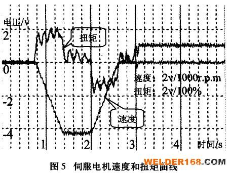 圖5是伺服電機的速度曲線和扭矩曲線。從圖中可以看到,第一階段對電機進行速度控制,電機轉速響應很快,轉速由0增加到2000r/m的過程十分平穩。第二階段對電機進行扭矩控制,電機由0增加到50% 的額定扭矩響應很快,也沒有出現大的波動。表明按照這個方法進行調試是可行的,完全能夠滿足自動化生產線的需要。
